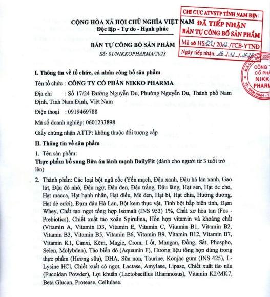 Hướng dẫn sử dụng Bữa ăn lành mạnh DAILYFIT