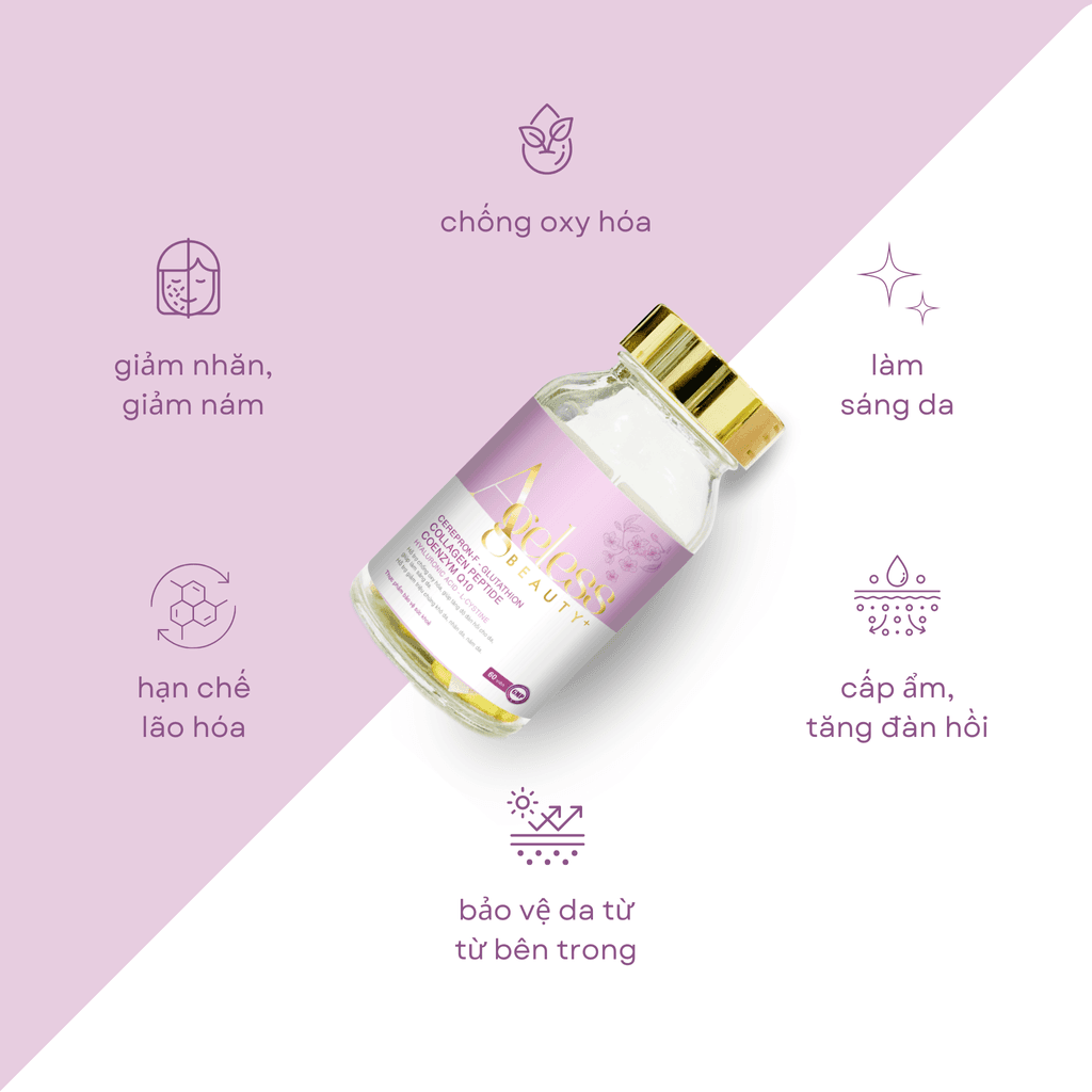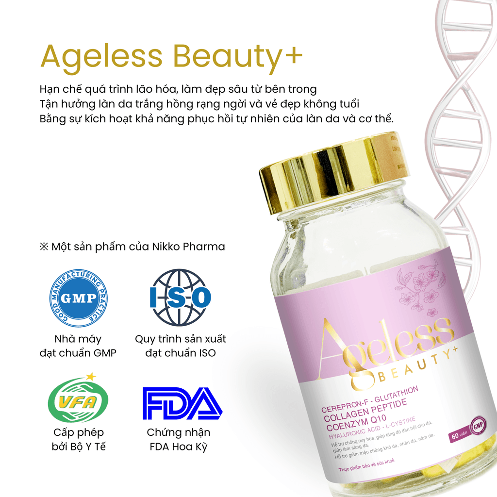 VIÊN UỐNG ĐẸP DA AGELESS BEAUTY+ hỗ trợ làm đẹp da, chống lão hóa, giúp da khỏe mạnh từ bên trong