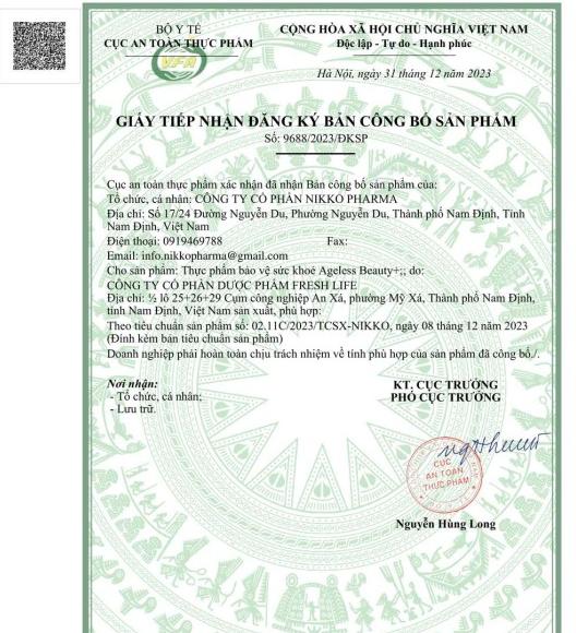 Sản phẩm đã được Bộ Y tế Việt Nam kiểm định chất lượng, cấp giấy tiếp nhận công bố sản phẩm và được sản xuất tại nhà máy đạt chuẩn ISO, tuân thủ nghiêm ngặt Thực hành sản xuất tốt (GMP) và đã đăng ký với Cục quản lý Thực phẩm và Dược phẩm Hoa Kỳ (chứng nhận FDA).