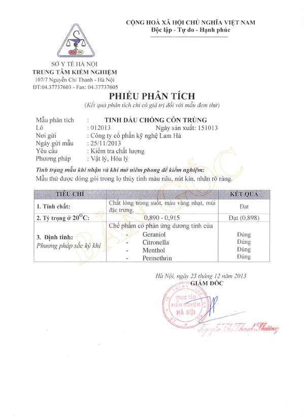 Tên sản phẩm: Tinh dầu chống côn trùng.