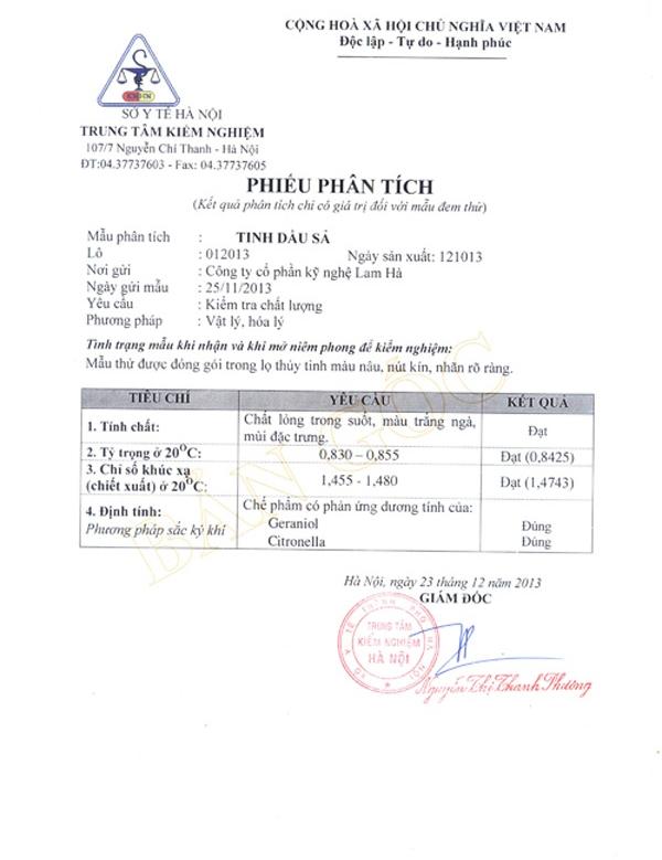 Thành phần: Tinh dầu Sả Chanh nguyên chất, cồn tinh chế, chất định hương cao cấp.