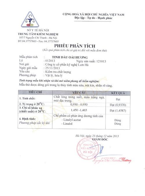 Thành phần: Tinh dầu Oải Hương nguyên chất, cồn tinh chế, chất định hương.