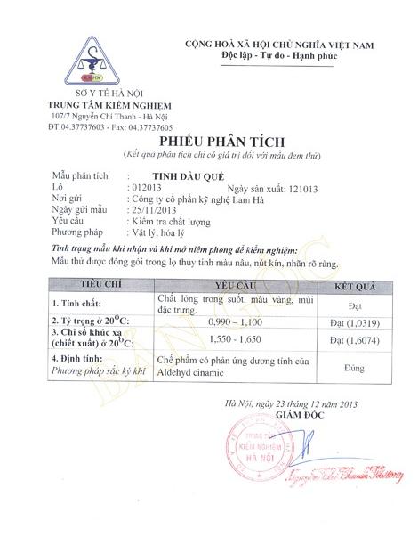 Thành phần: Tinh dầu quế nguyên chất, cồn thực phẩm, chất định hương.