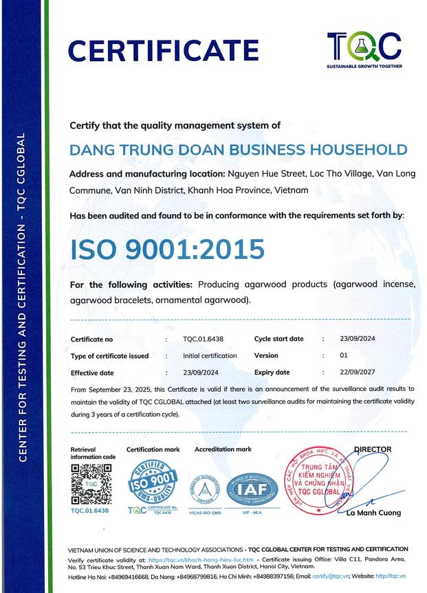 - Tên sản phẩm: Thanh trầm thiền định tuệ Đặng Gia