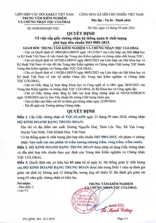 - Tên sản phẩm: Dầu trầm chìm Đặng Gia