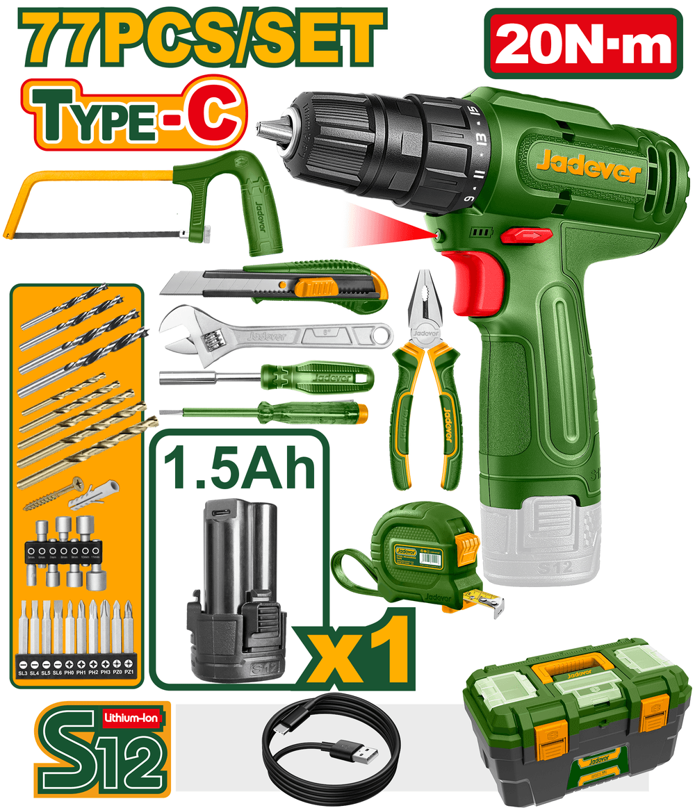 JADEVER - Máy khoan dùng pin Lithium-ion 12V - JDCDS520