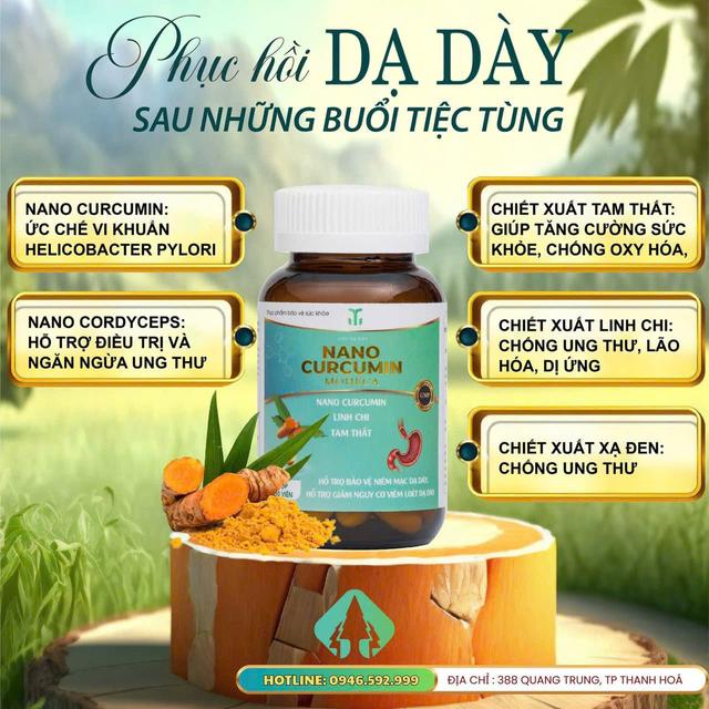 NANO CURCUMIN là sản phẩm dạng viên nang mềm, kết hợp Nano Curcumin cùng các chiết xuất thảo dược, giúp hỗ trợ chăm sóc hệ tiêu hóa và bảo vệ dạ dày.