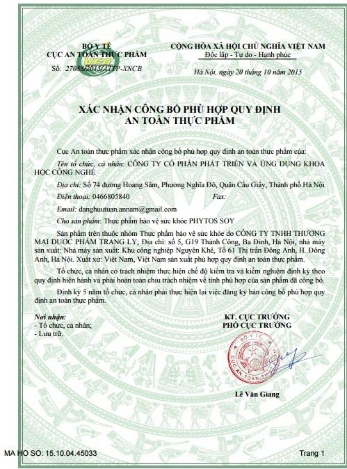 PHYTOSSOY là thực phẩm bảo vệ sức khỏe giúp hỗ trợ giảm cholesterol trong máu, điều hòa mỡ máu, bền thành mạch và phòng ngừa nguy cơ tai biến. Sản phẩm được nghiên cứu và phát triển tại Việt Nam, là kết quả hợp tác giữa Viện Hóa học (Viện Hàn lâm Khoa học và Công nghệ Việt Nam) và đơn vị ứng dụng công nghệ. Đề tài đã được nghiệm thu xuất sắc, khẳng định tính khoa học và độ an toàn của sản phẩm.