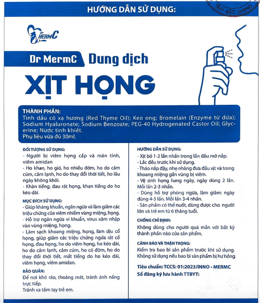 Dung Dịch Xịt Miệng Dr Merm C 30ml: Giải Pháp Tuyệt Vời cho Sức Khỏe Họng và Thanh Quản | Bảo Vệ Họng, Ngăn Ngừa Vi Khuẩn, Virus | Thành Phần Tự Nhiên, An Toàn và Hiệu Quả"