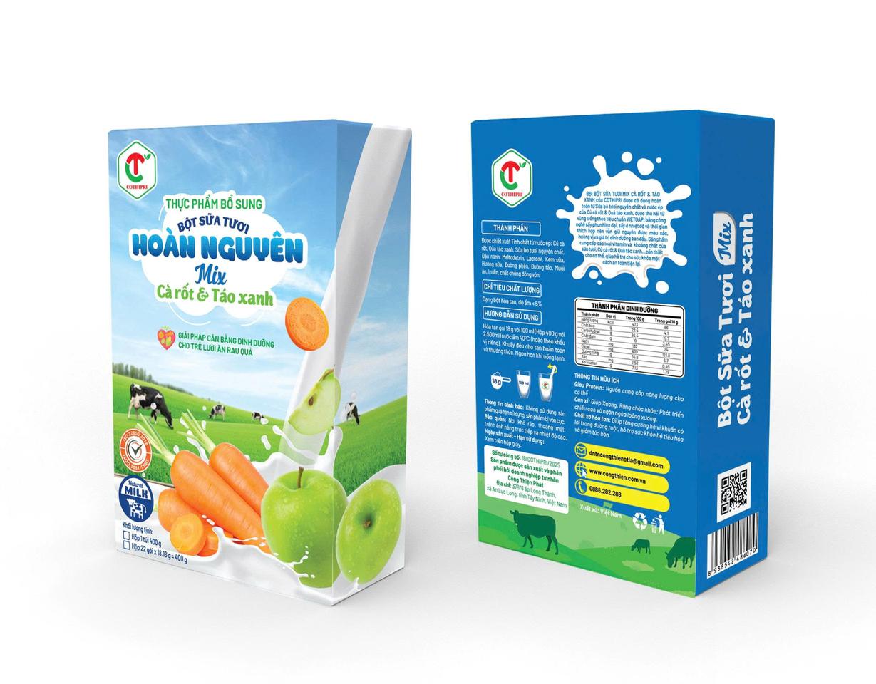 Bột Sữa Tươi Hoàn Nguyên Mix Cà Rốt & Táo Xanh 400g – Thực Phẩm Bổ Sung Từ Sữa Tươi Nguyên Chất