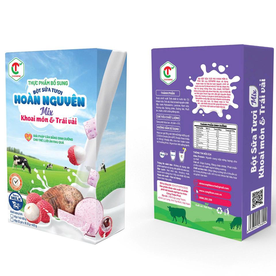 Bột Sữa Tươi Hoàn Nguyên Mix Khoai Môn & Vải Thiều 400g – Thực Phẩm Bổ Sung Từ Sữa Tươi Nguyên Chất Và Nước Ép Trái Cây Tự Nhiên